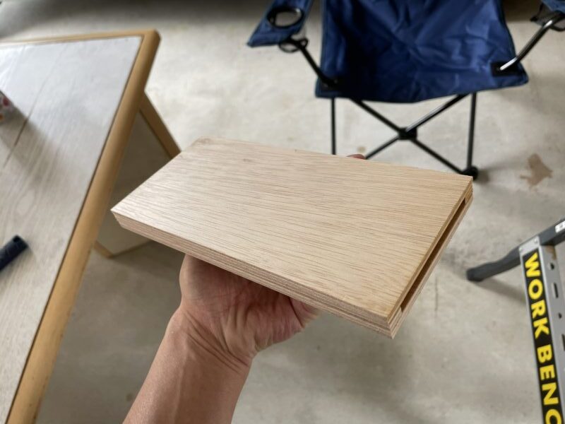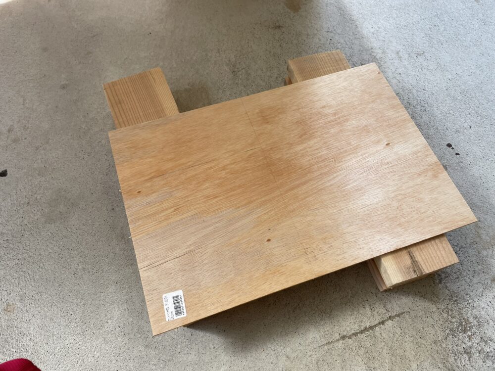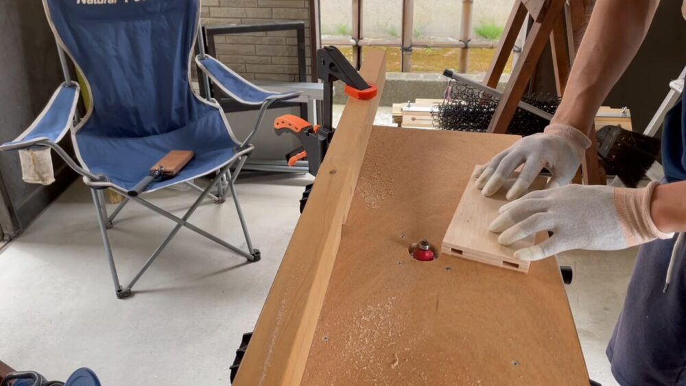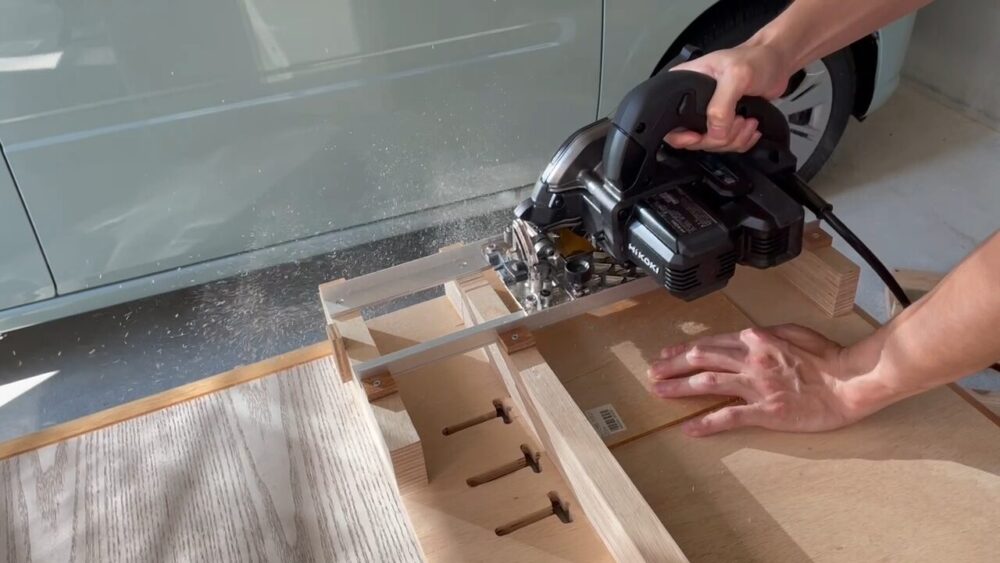 ノコギリである程度カットした後、自作した丸ノコスライド台を使って加工しました。
