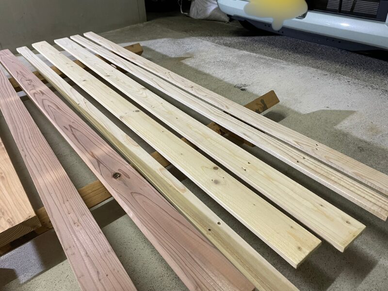 使用した材料は野地板というより、パレットをバラした杉の廃材。