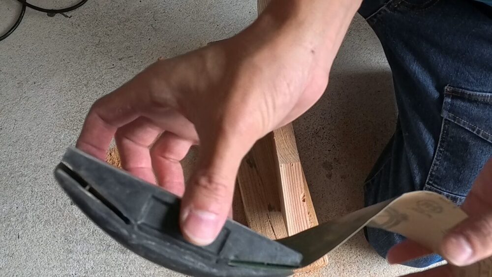 上の写真では、電動サンダーを仕上げとして使用しています。
