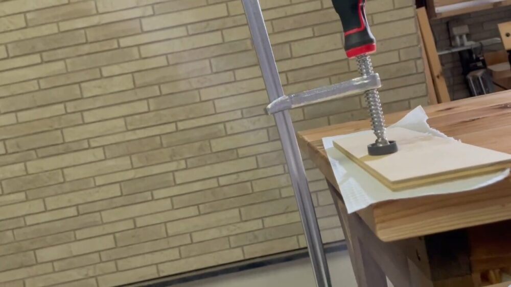 ビス止めした時のズレを軽減するため、クランプスクエアというもので固定します↓