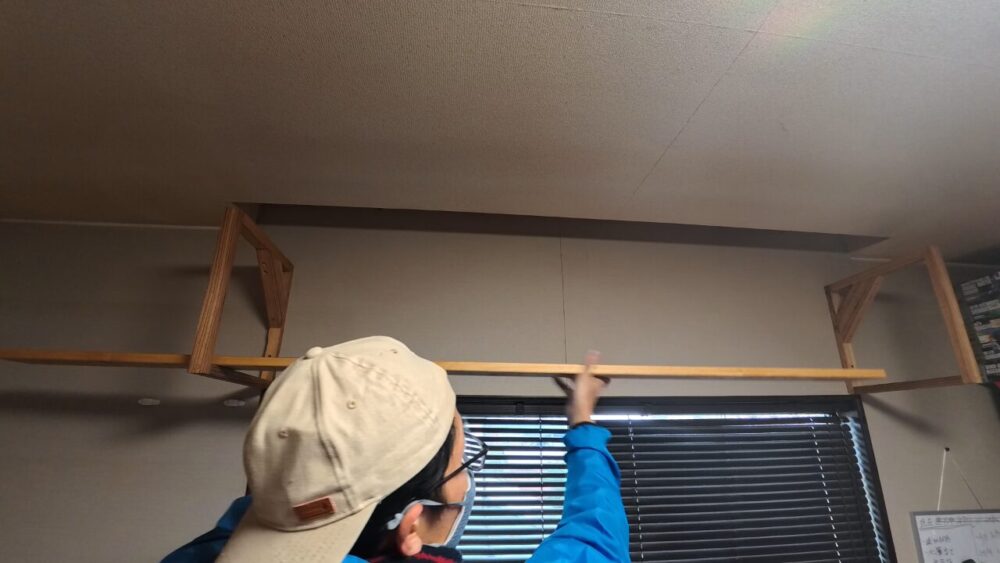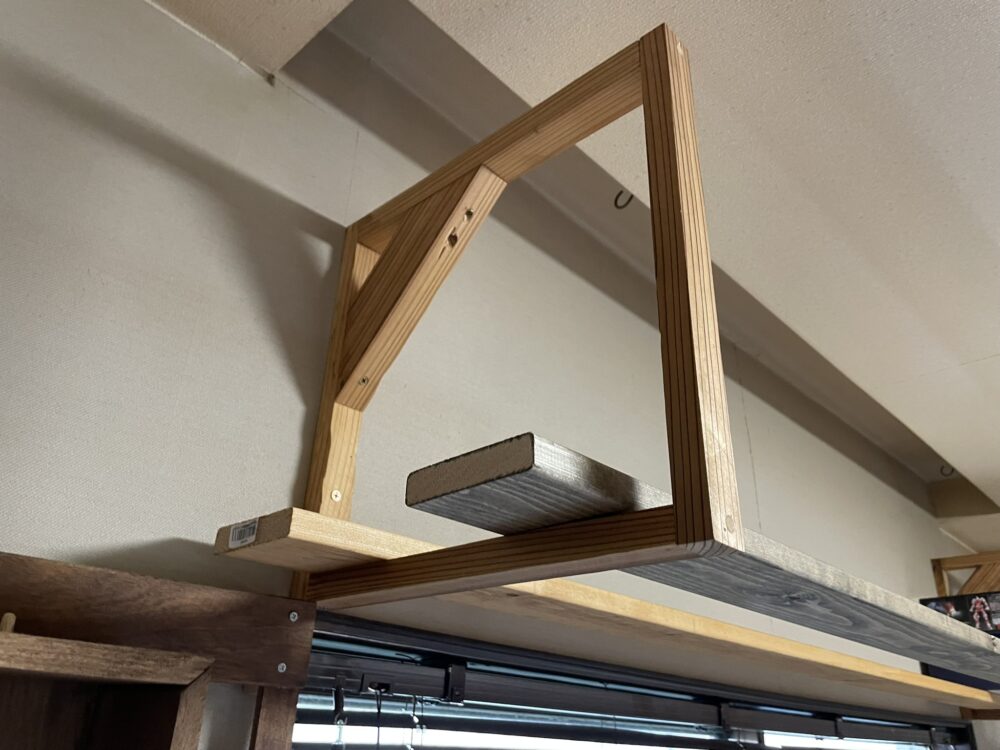 一般的にはL字の金具(アングルなど)を使って壁に設置しますが、ボクは木材だけで再現してみました。