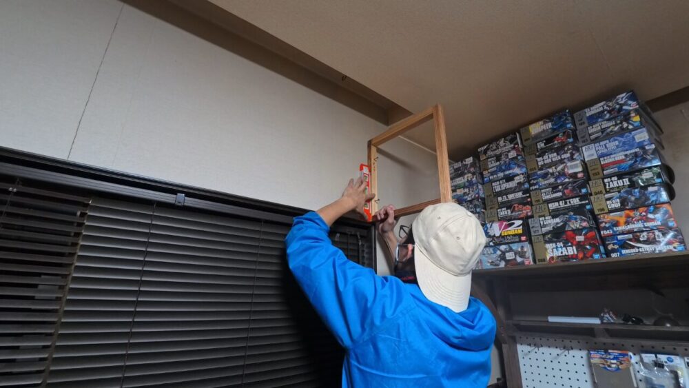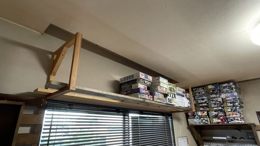 未開封のプラモデルを収納するために壁掛けラックを設置しました。