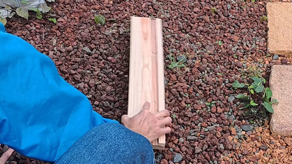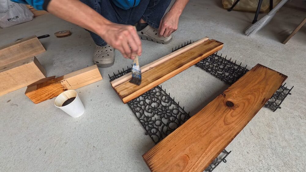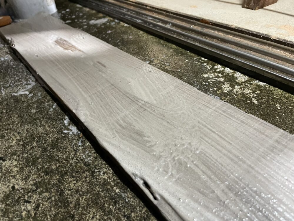 炙った後は焼杉の手順のようにブラシなどでこすります。