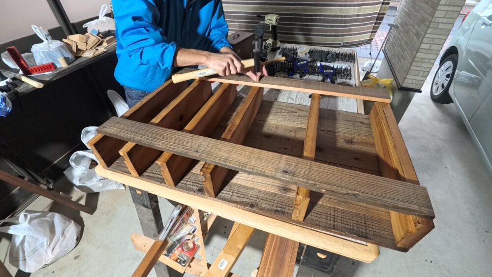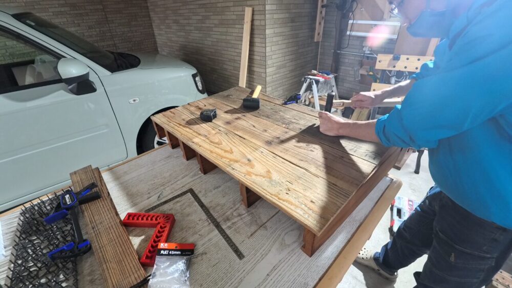 使用した工具:丸ノコ、インパクト、ドライバドリル、ミニサンダー、ジグソー