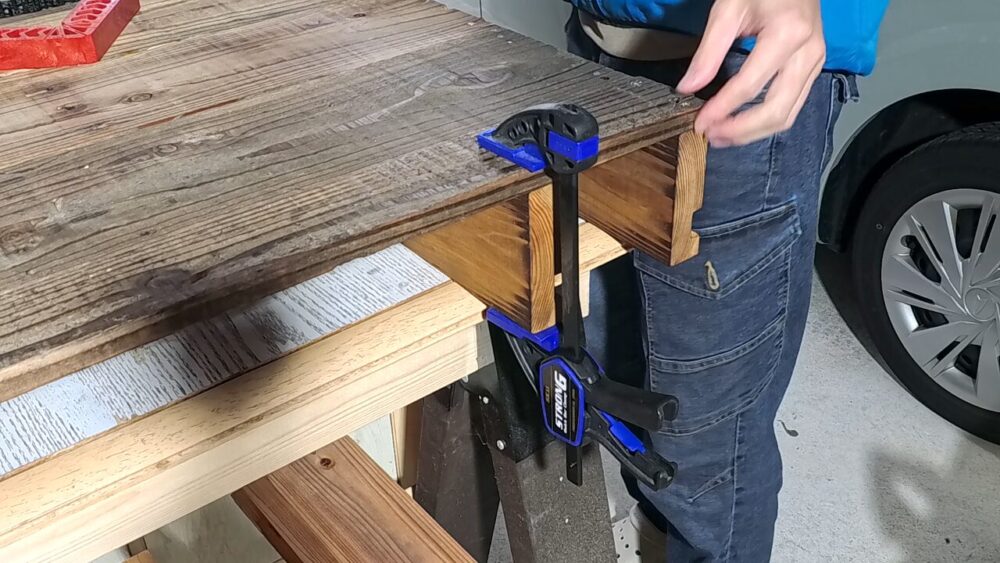 元々V字の溝が加工されているので、材料をカットして壁とパレットに張り付けるだけで壁に引っかけることが出来ます。