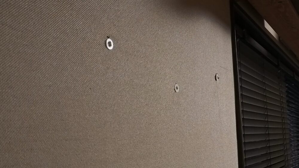 ビスの先端を少し出しておき、壁に押し当てる↓