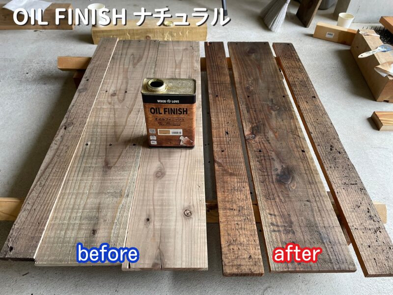 着色せずナチュラルで仕上げるつもりが、オイルが思ったよりも浸透してしまい色味が濃くなってしまいました。