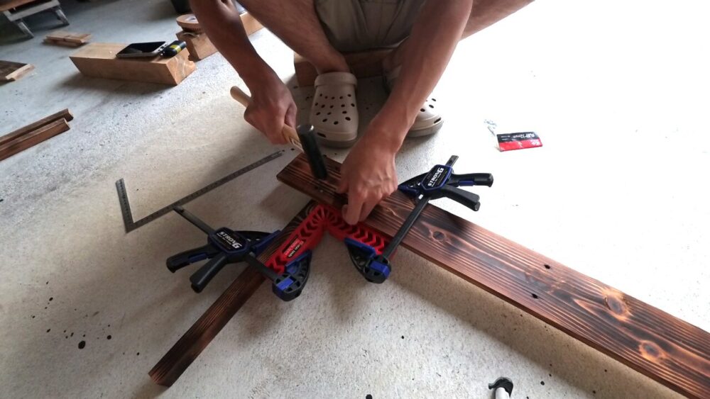 スコヤやクランピングなどを使いながらクランプで固定します。